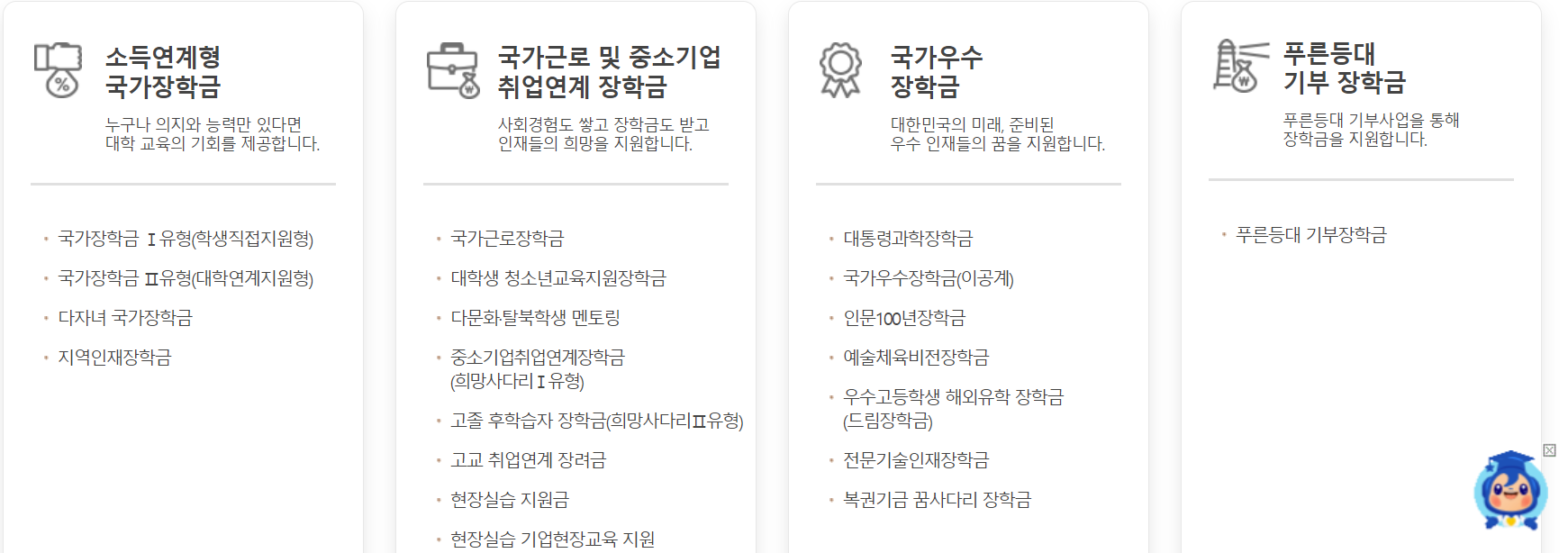 국가 장학금 종류
