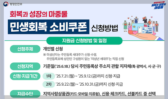 - 2025년 하반기 민생지원금은 전 국민 대상, 신청형