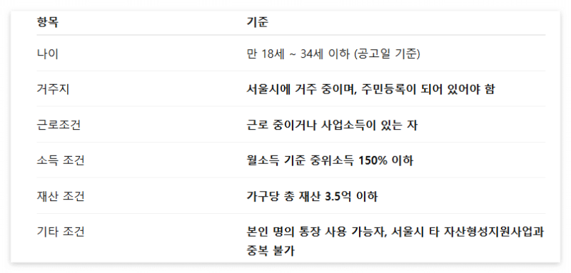최근 청년층은 고용 불안정, 주거비 부담, 자산 형성 어려움 등의 문제를 겪고 있습니다. 서울시는 이런 구조적 어려움 속에서도 자립의지를 가진 청년을 돕기 위해 이 제도를 만들었습니다. 단순 지원이 아니라, 스스로 노력한 만큼 보상하는 미래 설계형 정책입니다.
