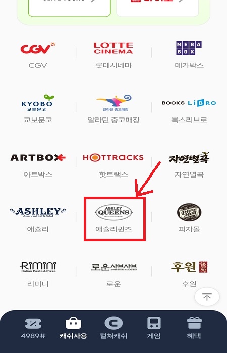 - 에슐리 퀸즈는 컬처랜드 컬쳐캐쉬 결제 가능