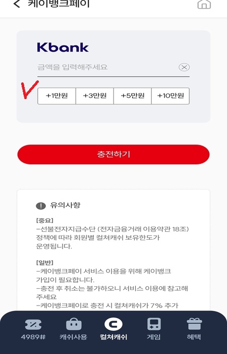 STEP 3. K뱅크로 컬쳐캐쉬 충전 (핵심)