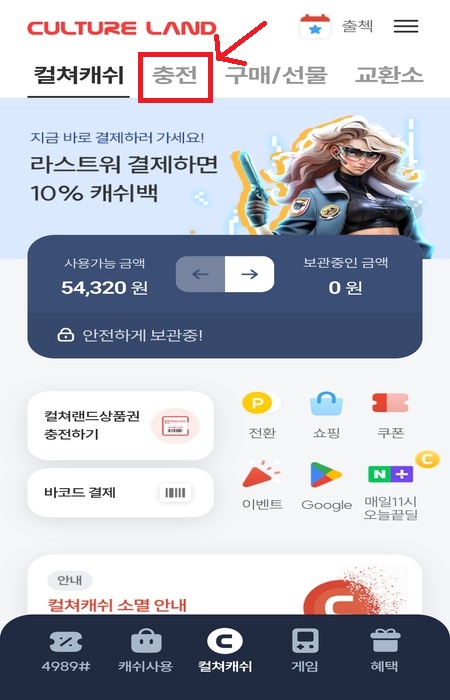 -컬처랜드 로그인→ 컬쳐캐쉬 충전