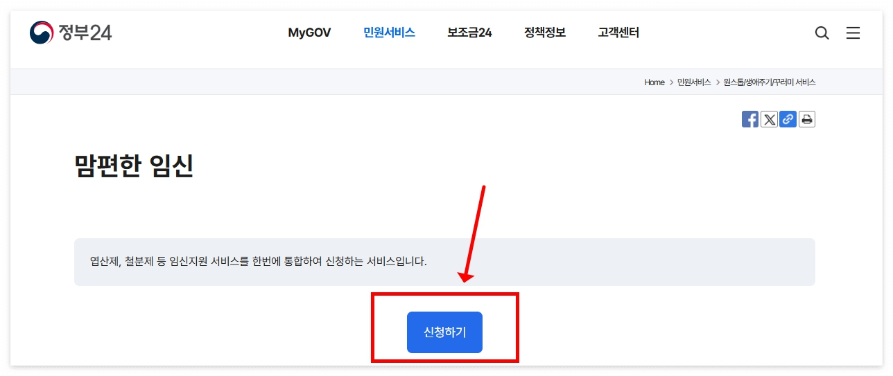 맘편한 임신 | 원스톱/생애주기/꾸러미 서비스 | 정부24
